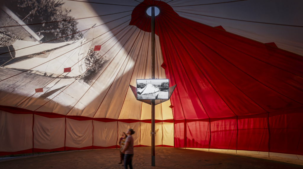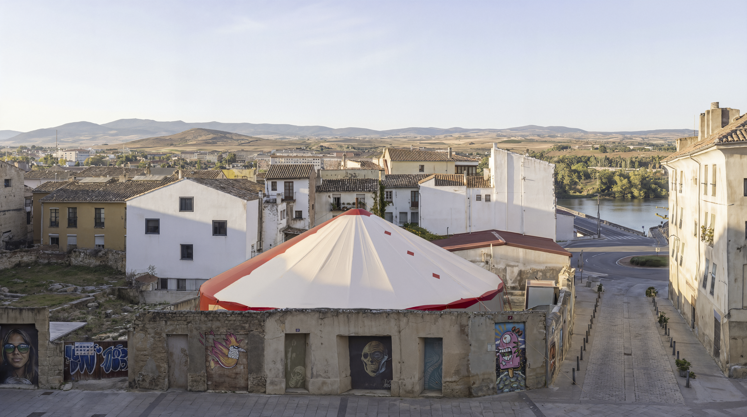 En el primero de estos ejes destaca la participación de Smiljan Radic, que propone una arquitectura efímera inspirada en el circo itinerante. Su intervención traslada a Logroño la lógica de estructuras ligeras, abiertas y colectivas, donde el espacio se construye más desde la experiencia que desde la forma. No es casual: el relato, lo escénico y lo compartido atraviesan buena parte de las propuestas de este bloque.