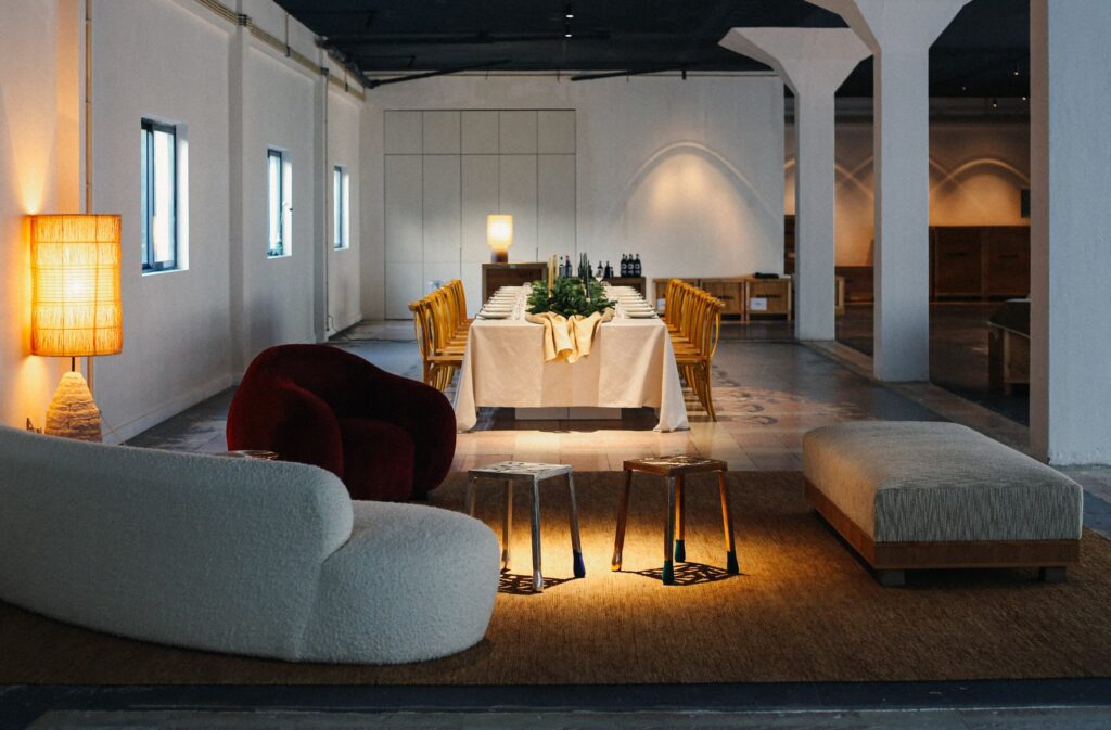 Entre los espacios que destacaron este año está Dam, el nuevo showroom y espacio de eventos de la marca portuguesa Hamrei. Situado en el barrio de Marvila —convertido en un auténtico polo creativo gracias a la ocupación de antiguos almacenes por artistas, diseñadores y galeristas—, Dam es un claro ejemplo de cómo Lisboa está reimaginando su pasado industrial.