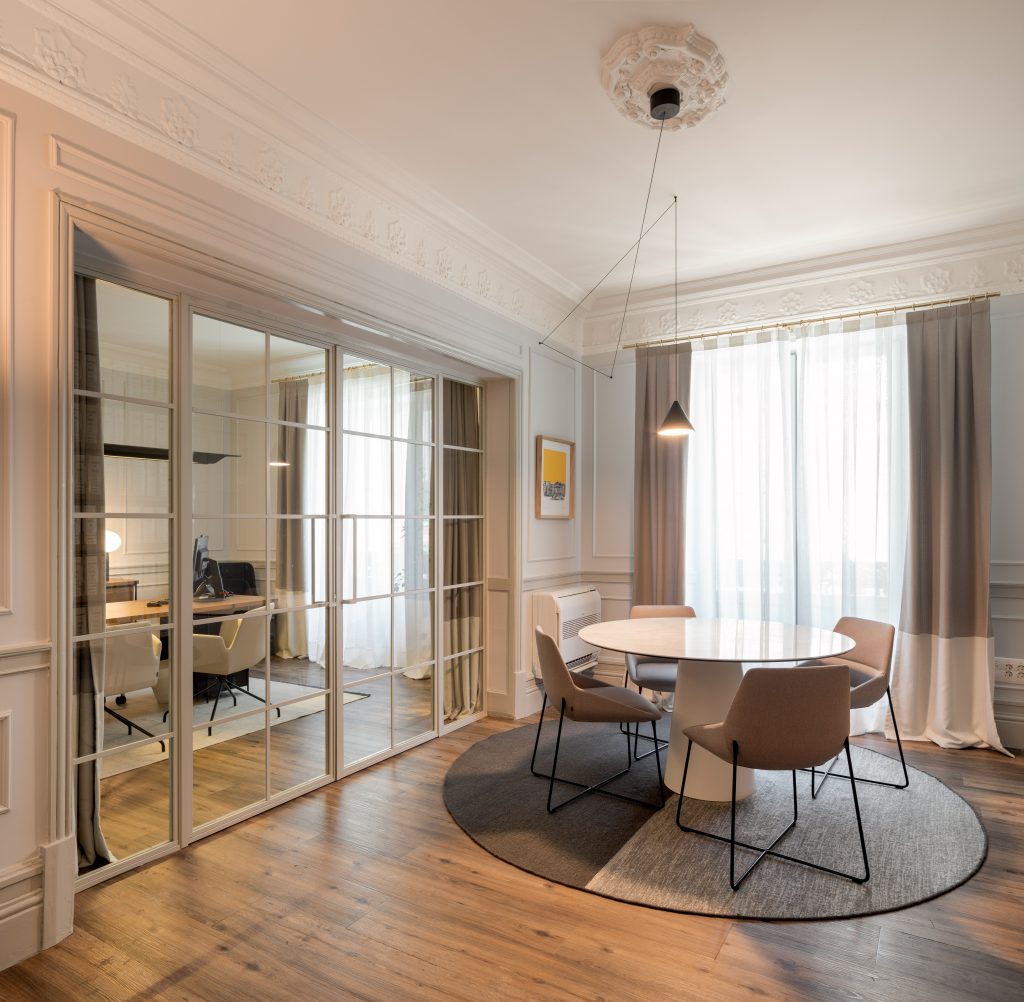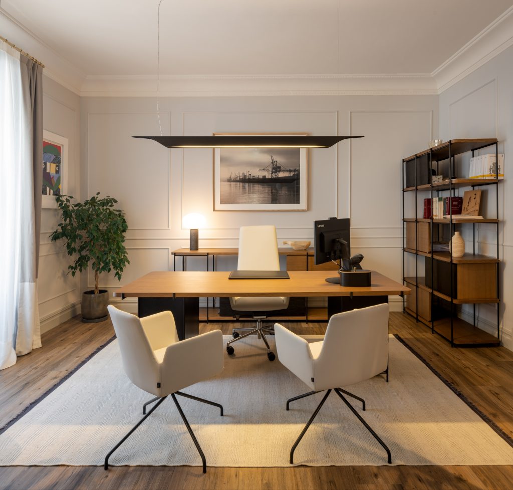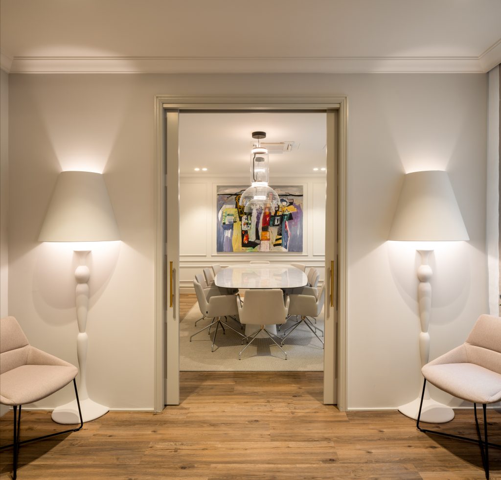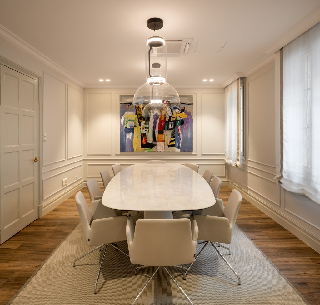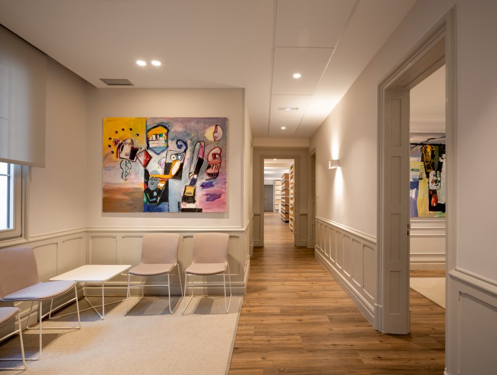 El arte impera en este interiorismo en una notaría de Bilbao llevado a cabo por Lázaro Estudio. Un proyecto que ilusiona desde el primer momento, ya que nace de la unión de dos reconocidos notarios de Bilbao: Miguel Ángel Martínez Urroz y Nicolás Almarza Ayarza. Por lo que era importante reflejar este nuevo comienzo a través del interiorismo y renovación del espacio interior.